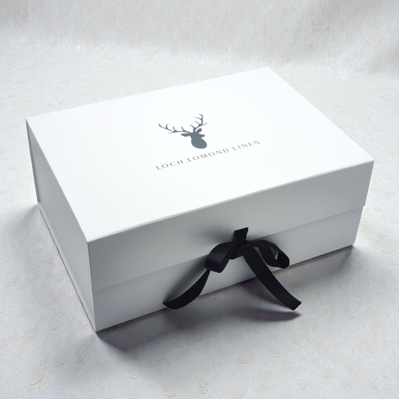 Enjoy your Loch Lomond Linen products in our luxury folding magnetic box, perfect for buying as a gift for someone special.